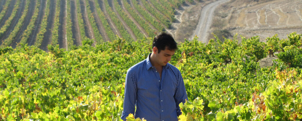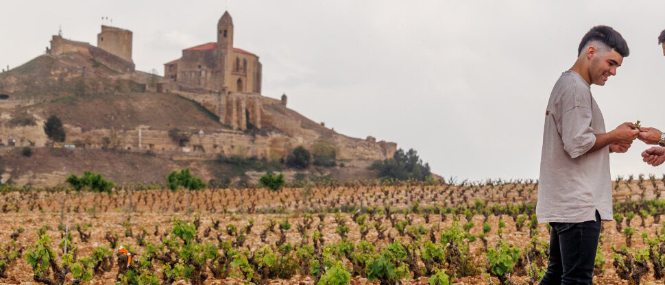 GR99 –cuyo nombre hace referencia al sendero que recorre el Ebro a su paso por San Vicente– es el pequeño proyecto de Carlos Mendoza, viticultor con amplia experiencia en la elaboración de vinos, y de Ana Benés, dos amigos que en 2019 optaron por iniciar un nuevo proyecto. Hasta el momento elaboran tres vinos: ‘GR99 Primera Impresión’ y ‘GR99 Contemplaciones’, muy identificables por el ojo de sus etiquetas, y «GR99 Milgrano», un espectacular parcelario de un viñedo de 1918 desgranado a mano y del que hacen apenas 600 botellas.